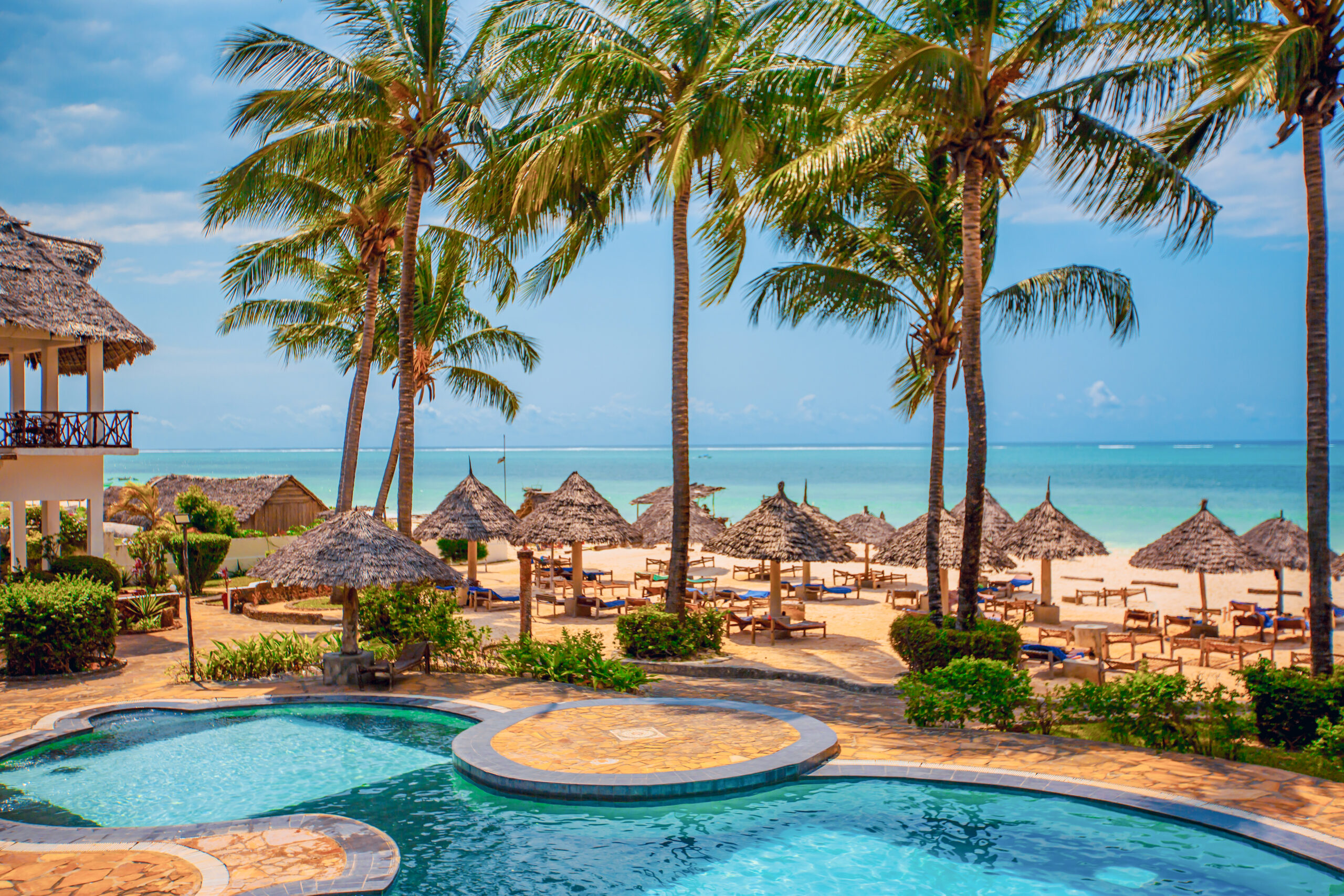 Il Waridi Beach Resort & Spa si trova a Pwani Mchangani, lungo una delle spiagge più belle e rinomate di Zanzibar, nella zona di Kiwengwa. Sorge direttamente su una lunga spiaggia di sabbia bianchissima, attrezzata con lettini e ombrelloni in stile locale. Dispone di 62 camere spaziose in stile africano, immerse nei giardini tropicali e dotate di tutti i comfort. Il trattamento Hard All Inclusive include pasti a buffet, bevande locali e momenti dedicati come aperitivi e tè pomeridiani. Il ristorante principale propone cucina mediterranea e sapori tipici dell’isola, affiancato da bar e ristorante à la carte. Il resort offre piscina, centro benessere Iki Spa, palestra, attività sportive e biciclette. Completano l’esperienza servizi diving e spazi dedicati al relax e al divertimento quotidiano.